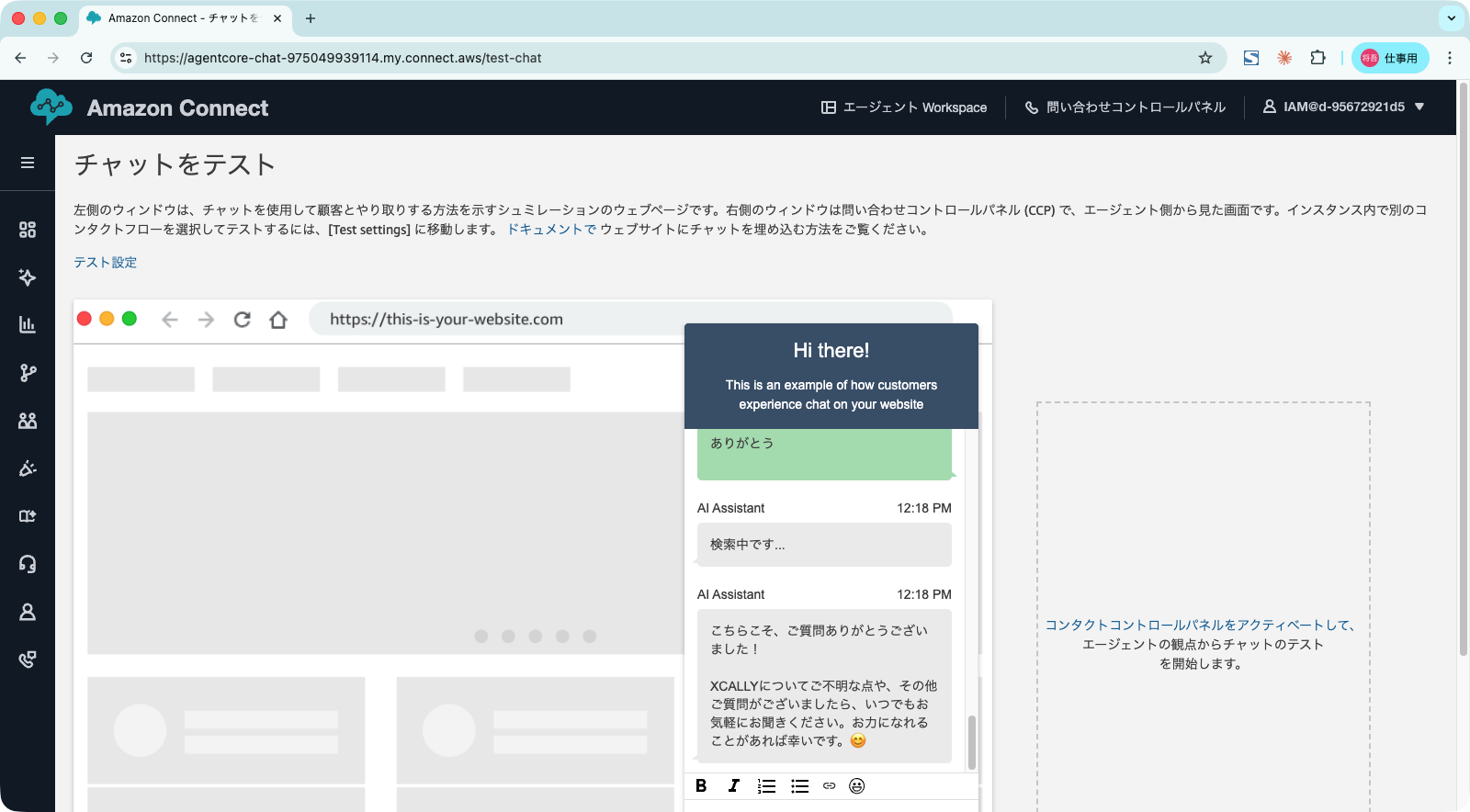 ブラッシュアップしていないこともあり、Amazon ConnectのチャットとAmazon Bedrock AgentCoreの連携が必須という要件以外は、Streamlitなどを使って別でGUIを提供するほうがいいと所感です。