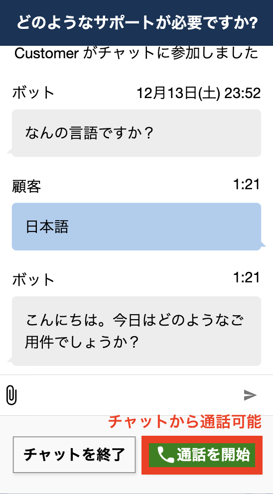 Amazon Connectのチャットウィジェットでは、チャットから通話へシームレスに切り替えることができます。