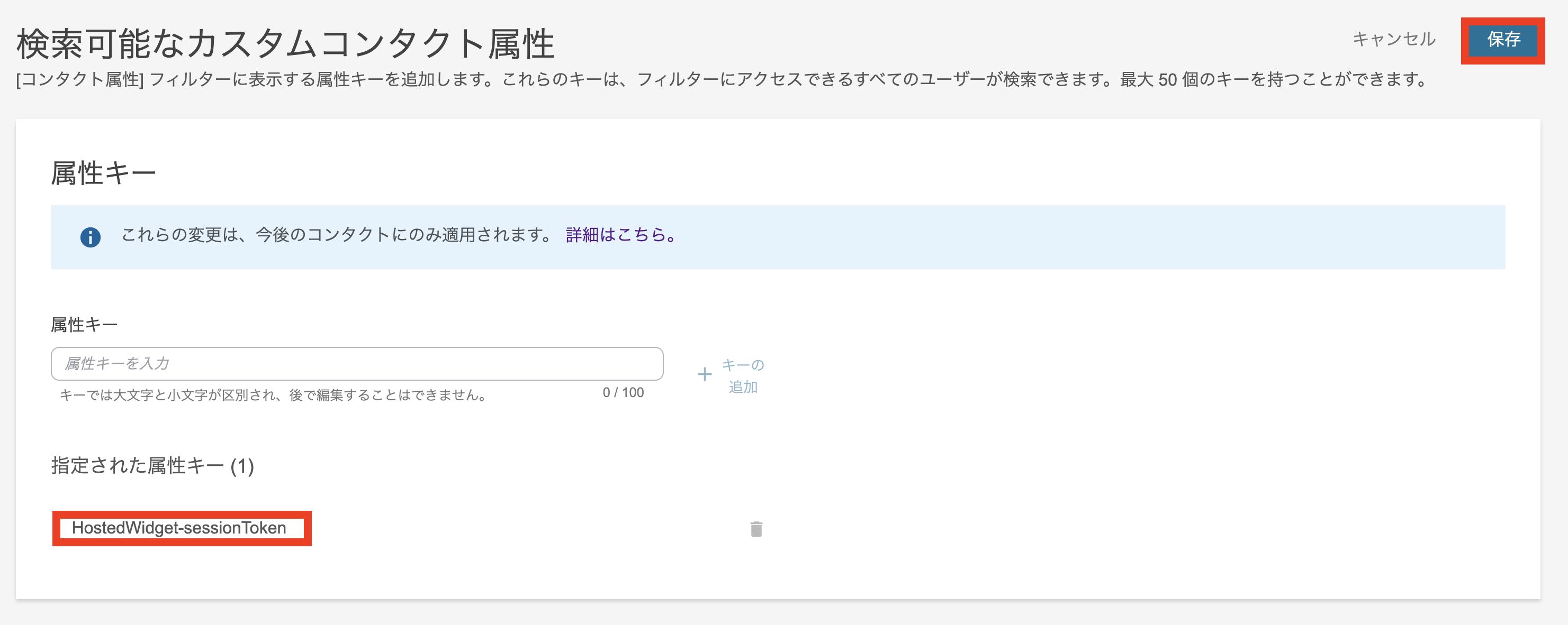 4. キー:HostedWidget-sessionTokenを追加し保存
