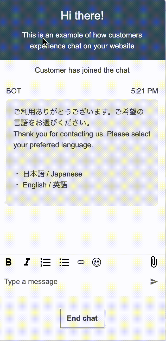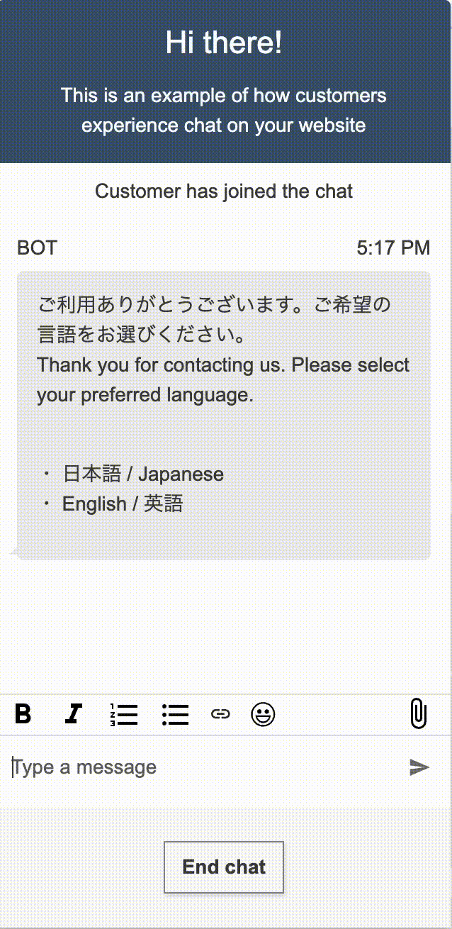 言語に応じて適切なAIエージェントに切り替わり、それぞれの言語で正しく応答できていることが確認できました。