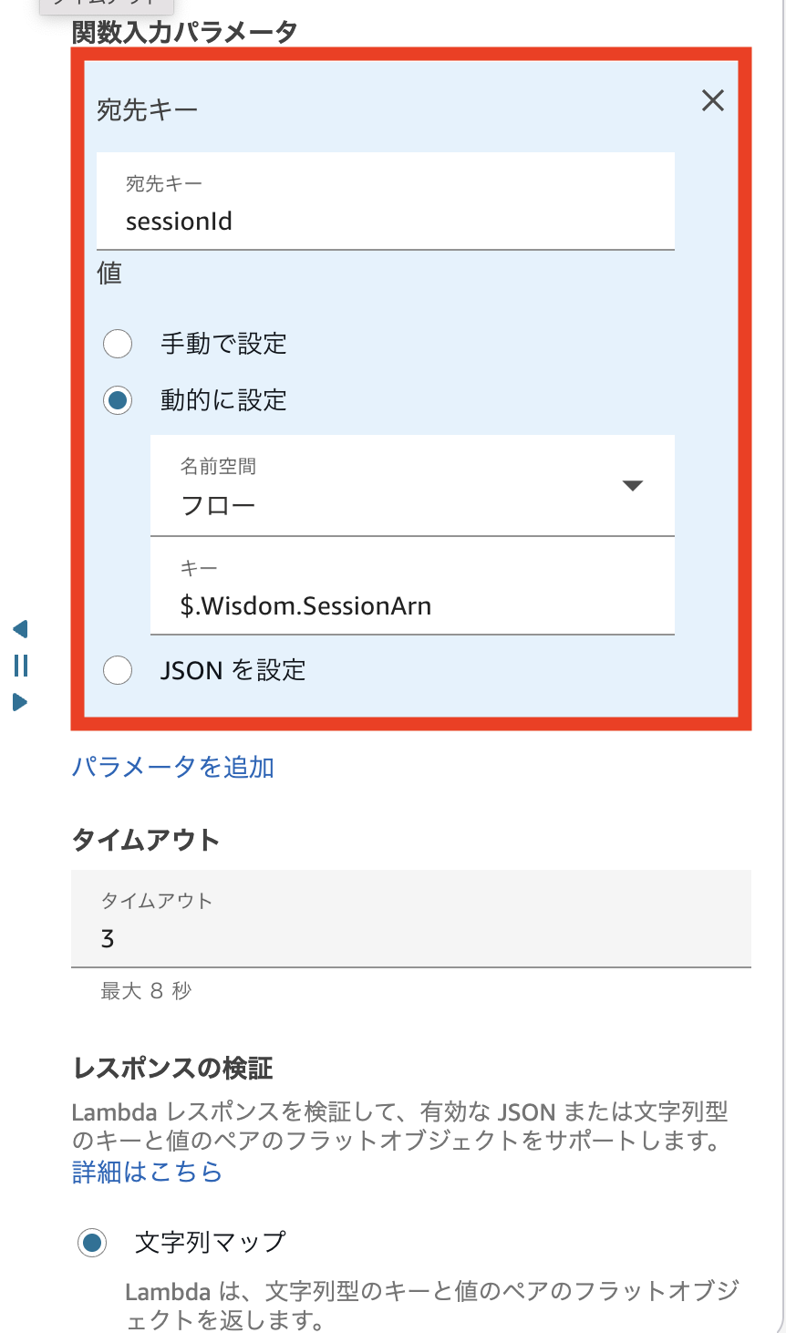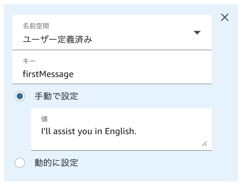 AIエージェント用のLexをセットし、保存していた挨拶文を動的に設定します。