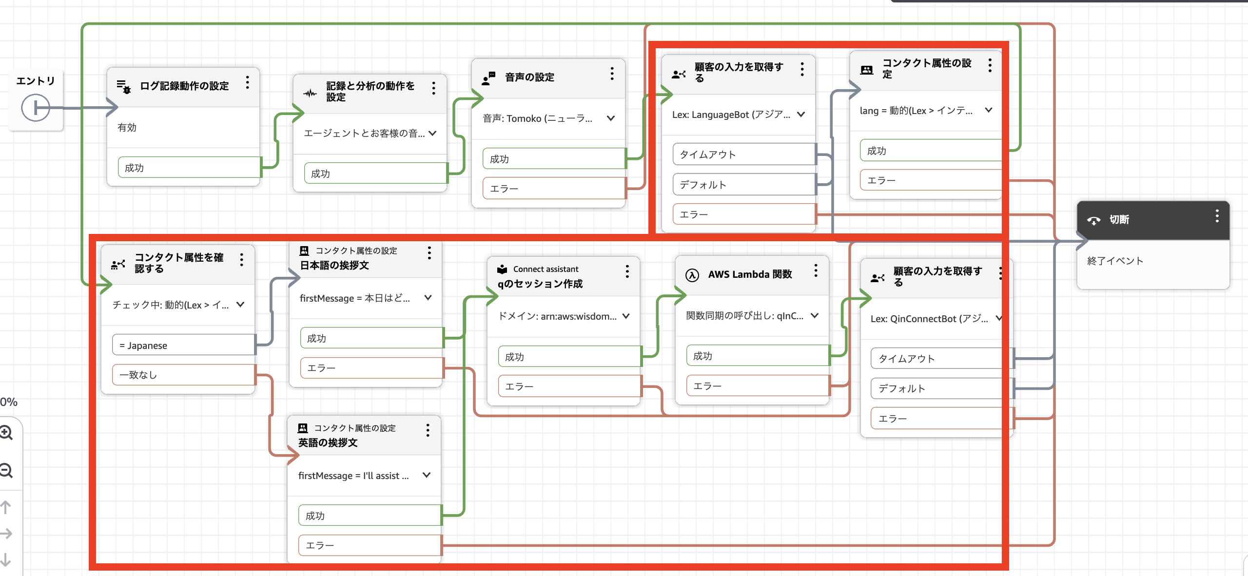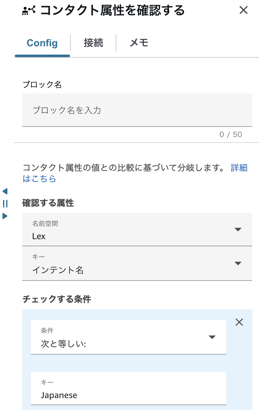 このインテント名をコンタクト属性 lang に保存しておき、後続の処理で言語判定に使用します。