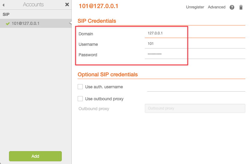 コンテナが起動したら、ソフトフォンからテストコールしてみましょう。
