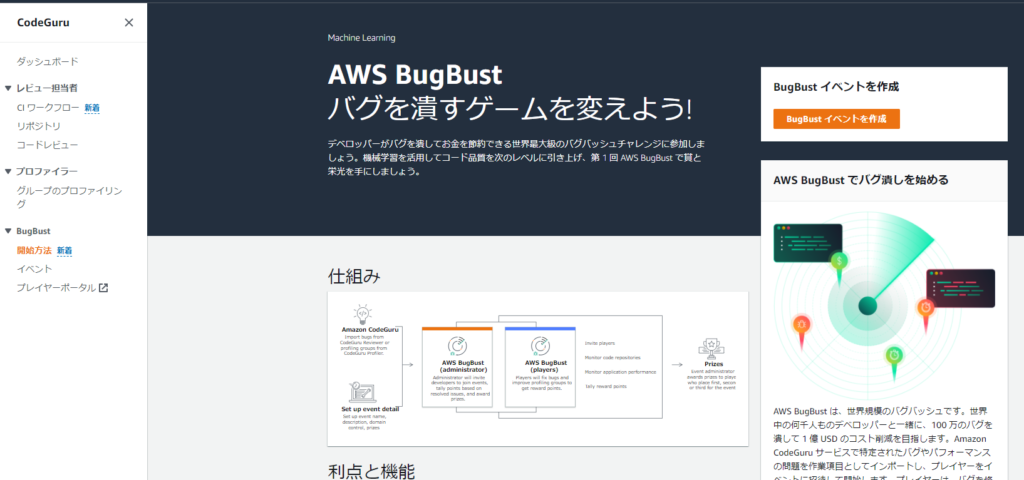 なになに?新サービスか?と思ったら、AWSのサービスを使用して、プログラムのバグを検知、修正するプロセスから変革させようというゲーム性のあるイベントのようでした。
