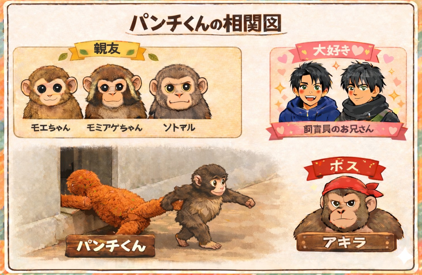 こうした優しい仲間たちに囲まれて、パンチくんは少しずつ「サル社会」のルールを学びながら成長しているんですね。