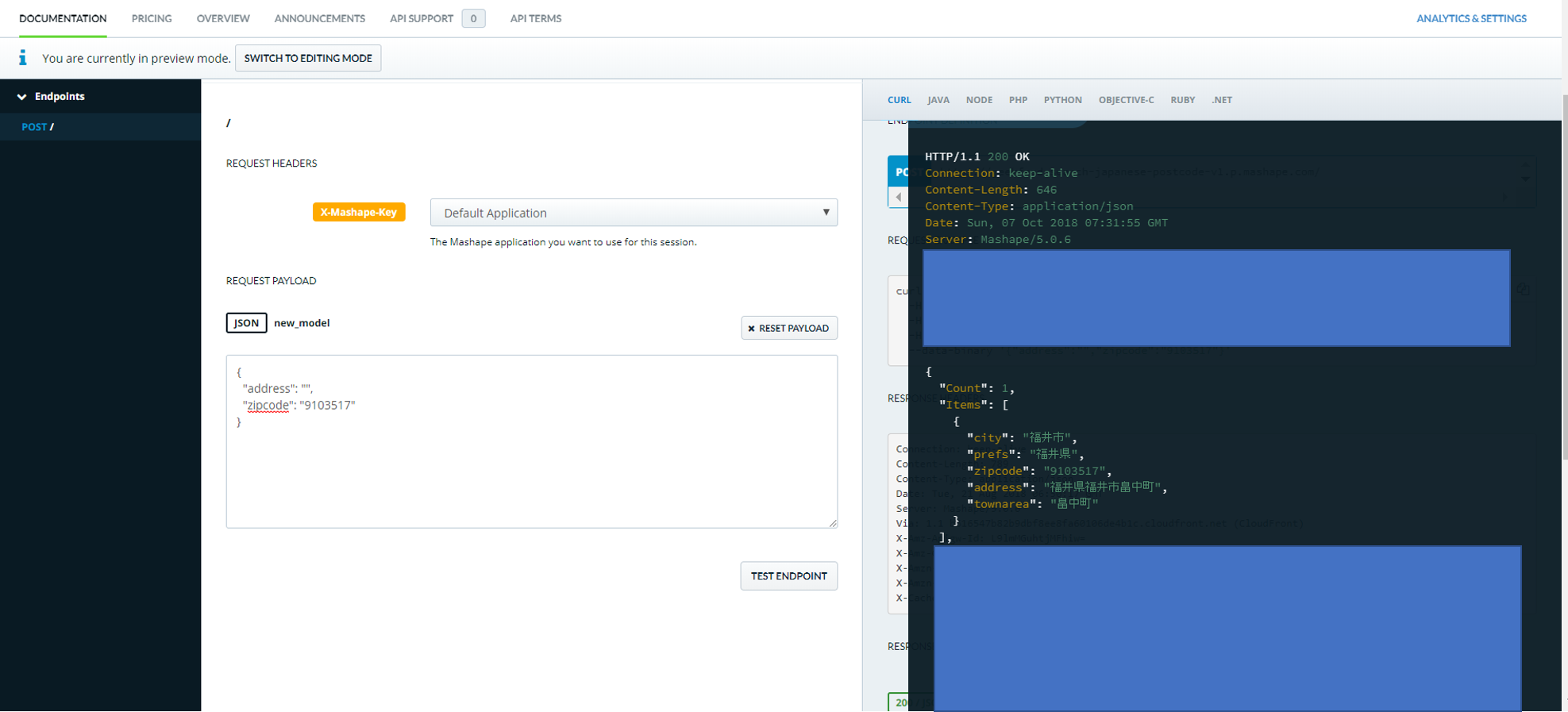 登録したAPIはRakuten RapidAPIからも同様に実行できました。